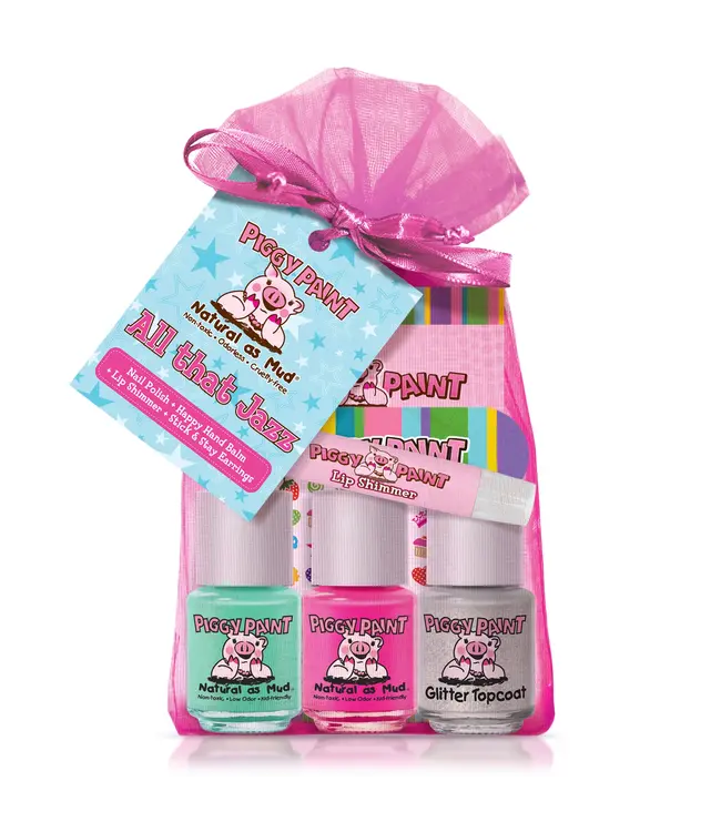All that shimmer, sass, and sparkle! From bold polish shades to fun extras, this set is perfect for creative kids who love to mix, match, and shine in their own way. Piggy Paint nail polish is Non-toxic, Virtually Odorless, and Kid-friendly!