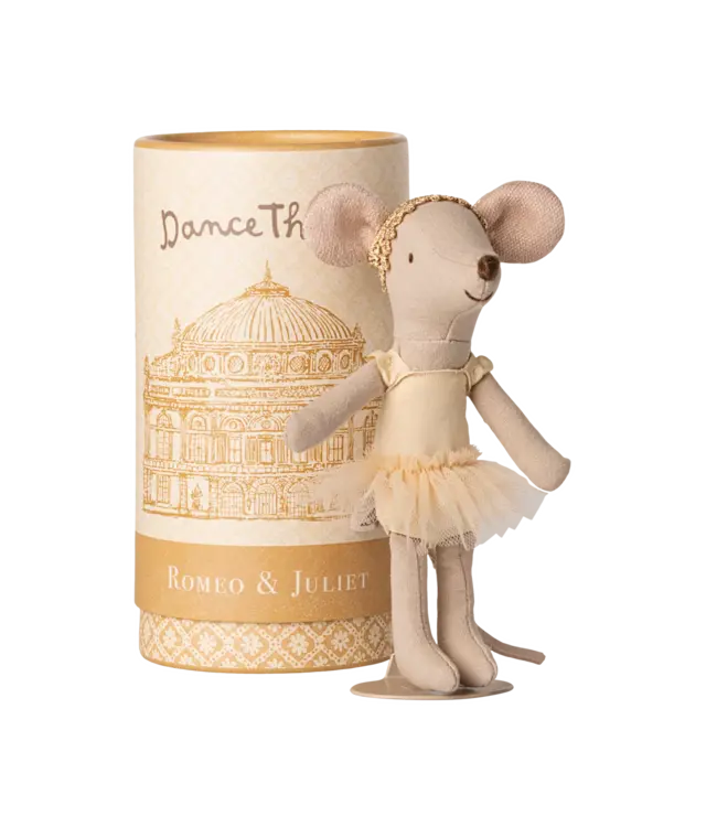 Dressed in a tutu and golden tiara, Big Sister is ready for her grand performance in Romeo and Juliet. She arrives in a decorated tube and comes with a metal stand, so she can perform wherever. Her magnetic paws allow for dance rehearsal with her partner.