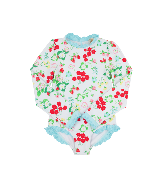 Meet the surf suit she'll beg to wear for every water adventure! Beaufort Bonnet's Sarasota Surf Suit in Berry Sweet with Belhaven Blue is a fruit-forward, sun-protective stunner that's equal parts adorable and adventure-ready, whether she's riding waves, building sandcastles, or splashing around the resort pool. The playful Berry Sweet print just screams summertime, and the thoughtful construction means it holds up beautifully through every salty, sun-soaked adventure.