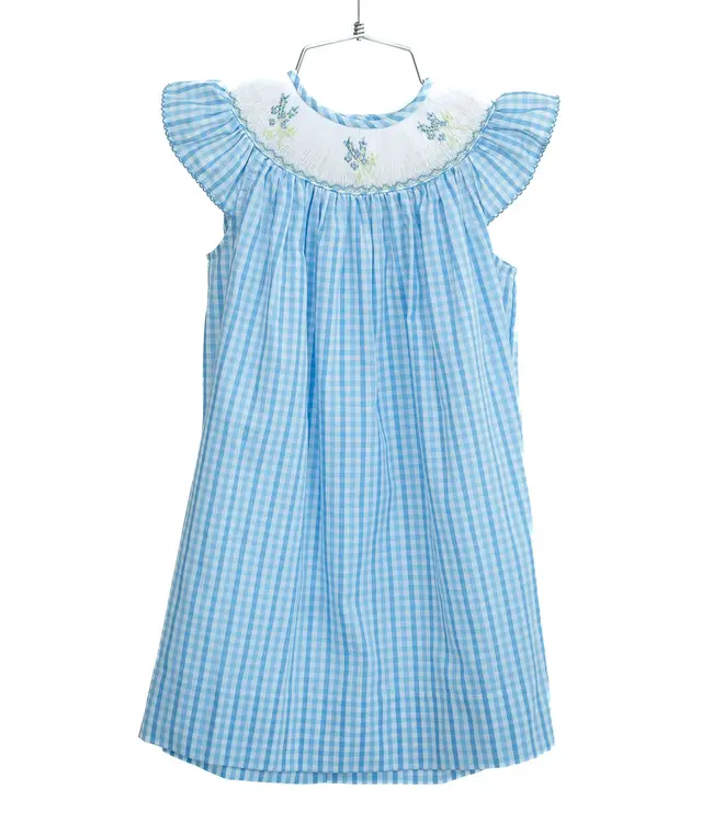 An heirloom-quality favorite for girls, this lovely dress from Ruth and Ralph showcases classic blue gingham fabric and hand-smocked bluebonnets. Perfect for family photos, spring gatherings, Easter festivities, or Mother’s Day celebrations.