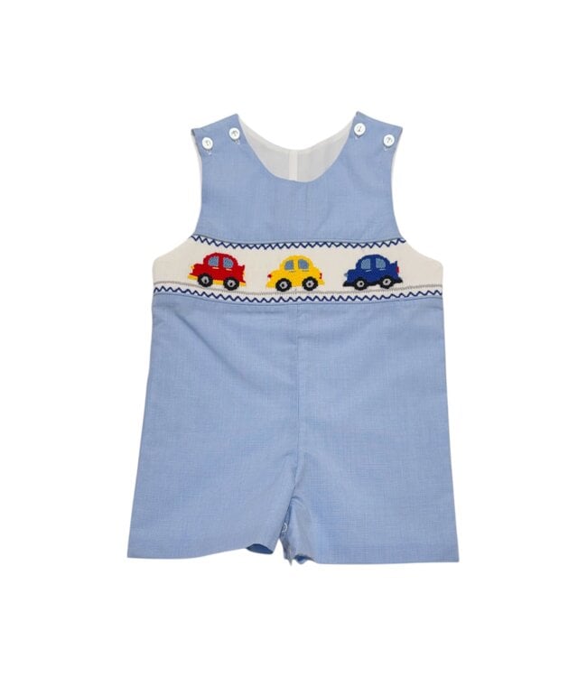 Delaney Blue Check Smocked Cars Short Jon Jon