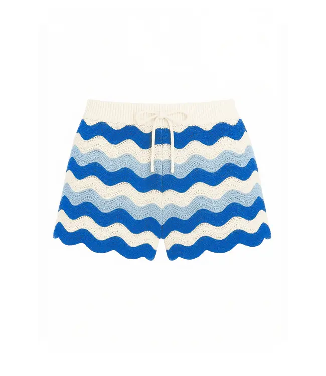 Limeapple's chic crochet knit shorts showcase a layered gradient pattern and a drawstring pull-on waistband. Their relaxed fit makes them the perfect cover-up to throw on over your swimsuit.