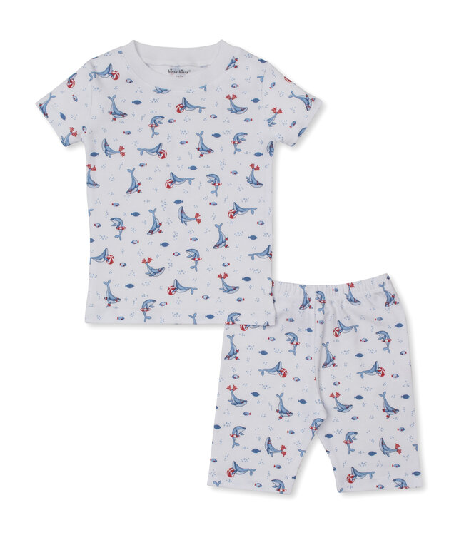 Drift into dreamland in Kissy Kissy's playfully patterned two piece pajama set. Featuring their tropical whales print and made from super-soft Pima cotton, your precious toddler is sure to get a good night's sleep!