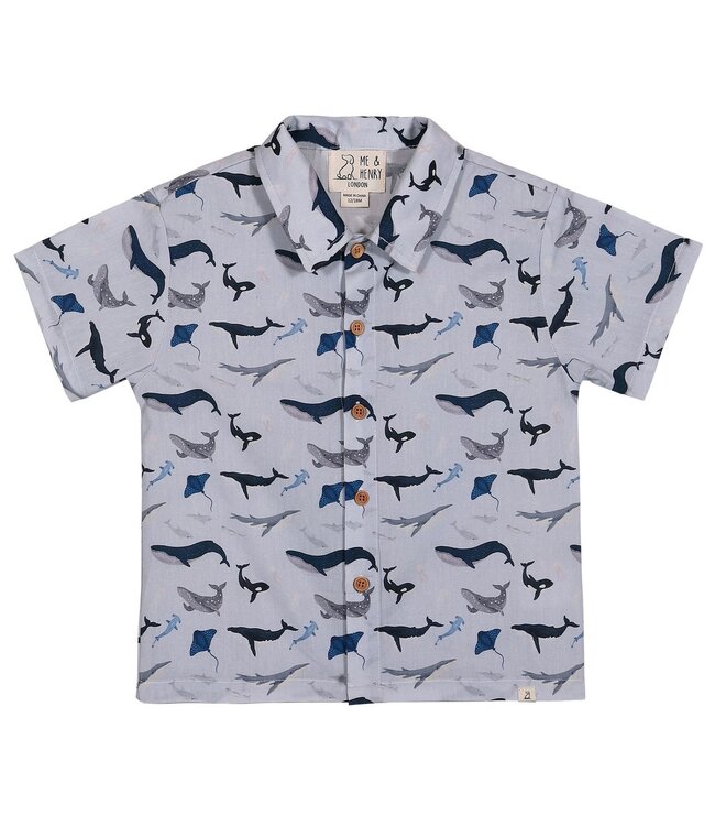 Me & Henry Blue Whale Print Woven Shirt