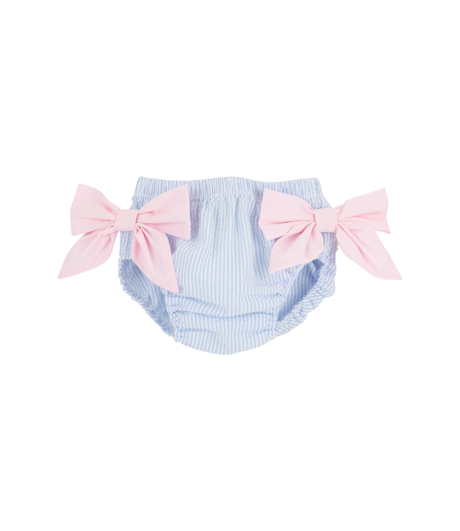Beaufort Bonnet's adorable Bow Bottom Bloomer in Breakers Blue Seersucker with Palm Beach Pink are the ultimate diaper cover that adds sweetness and charm to any outfit! The seersucker fabric keeps her comfortable all day long while the charming bow detail adds just the right amount of personality. Perfect for layering under dresses, pairing with a tee, or worn on their own to the pool! These bloomers are the fun wardrobe essential that every little one needs!