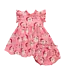 Sweet candy canes and jolly stocking-capped Santas mix and mingle on Pink Chicken's Jennifer Dress. Set includes a matching elastic waist diaper cover with a fixed red satin bow at the waist. Twin with Big Sis in the Girls Jennifer Dress.