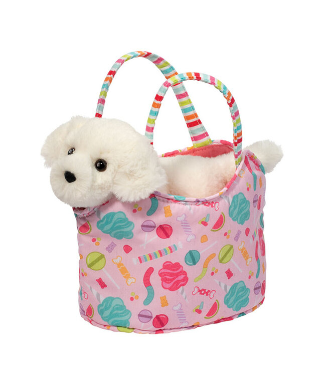 This playful plush friend is bubbly, excitable, and full of delicious energy. The pink bag pops with bright and mouthwatering candy designs! Tucked inside, the plush companion adds extra sweetness, making every adventure feel like a treat worth savoring.