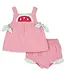 This classic Florence Eiseman seersucker set features cheerful watermelon detailing on both the dress and coordinating bloomer. Open sides with ties add a sweet, traditional finish.