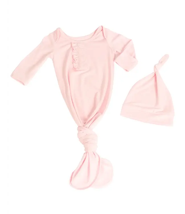 The Yellow Lamb Cinch Sack with ruffle and matching hat is a cozy knit essential for your newest arrival. Designed with a simple tie-bottom for warmth and easy diaper changes, this soft, sweet set is perfect for preemie and newborn babies.