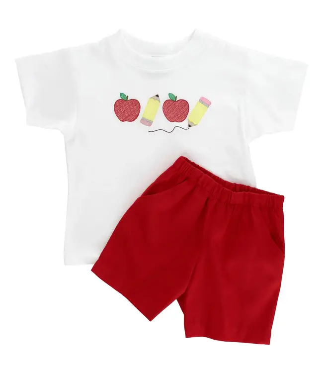 This tailored outfit includes a crisp shirt paired with coordinating shorts. Perfect for picture day, the apple and pencil set is designed for comfort and style. Durable and breathable, it keeps up with active kids while ensuring they look their best.