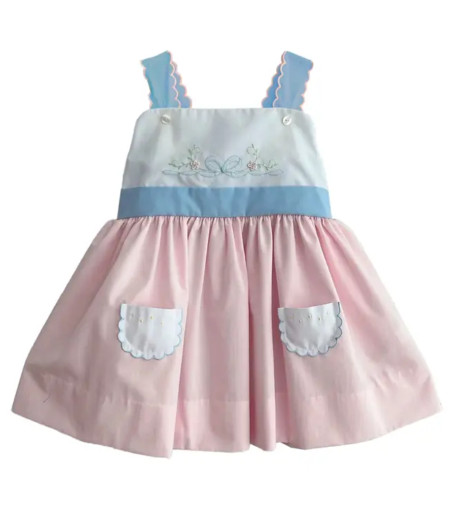 The Proper Peony's Claudette dress is such a fun frock to wear. It's a true stand-out with hand-embroidered stitching. Soft pink with light blue accents makes for the sweetest styles.