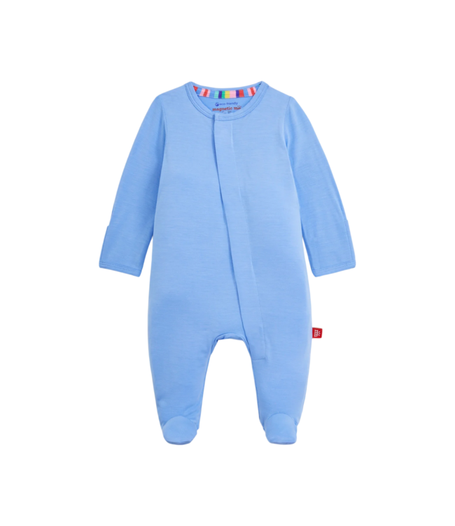Magnetic Me's Modal Magnetic Footie, designed with magnetic closures, is a quick and quiet lifesaver for all-day and middle-of-the-night diaper changes. Made from sustainable modal, it's silky-soft and temperature-regulating to keep your little one comfy. Read more.