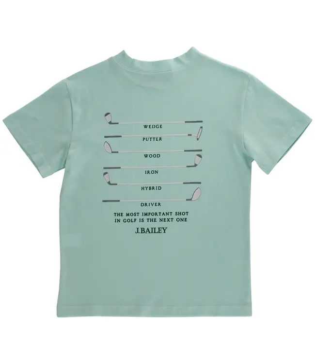 Bailey Boys' Clubs on Seaglass tee blends golf-inspired graphics with soft pastel hues. Made from premium cotton for comfort and durability, it's perfect for family getaways, casual Fridays, or summer portraits. A tee that’s as refined as it is fun!