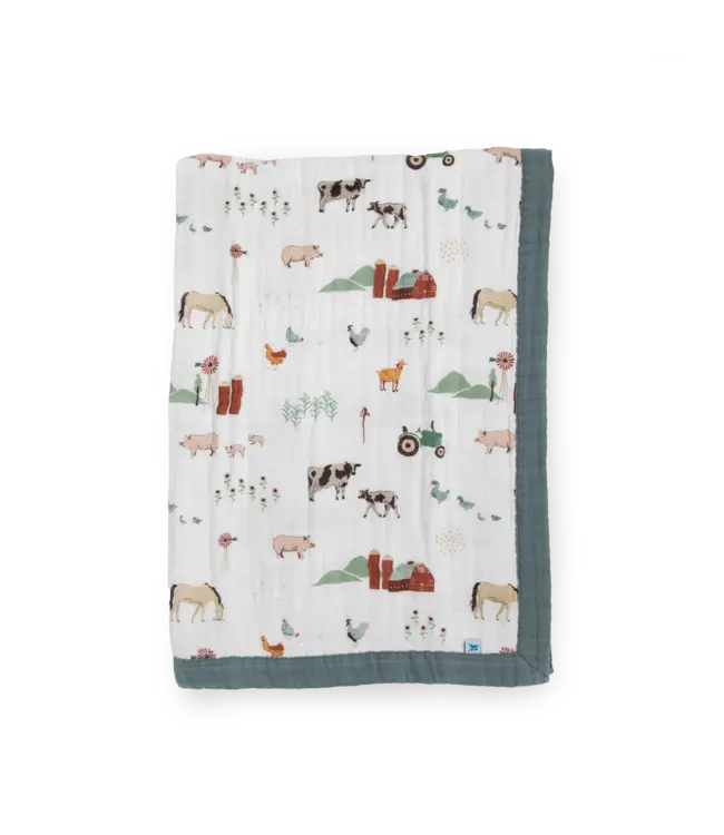 Made from multi-layered 100% cotton muslin, it's just as durable as it is soft, cozy and breathable. Perfectly sized for snuggles, tummy time or on-the-go in your favorite stroller or jogger. A beautiful touch to any nursery, and as a perfect shower gift.