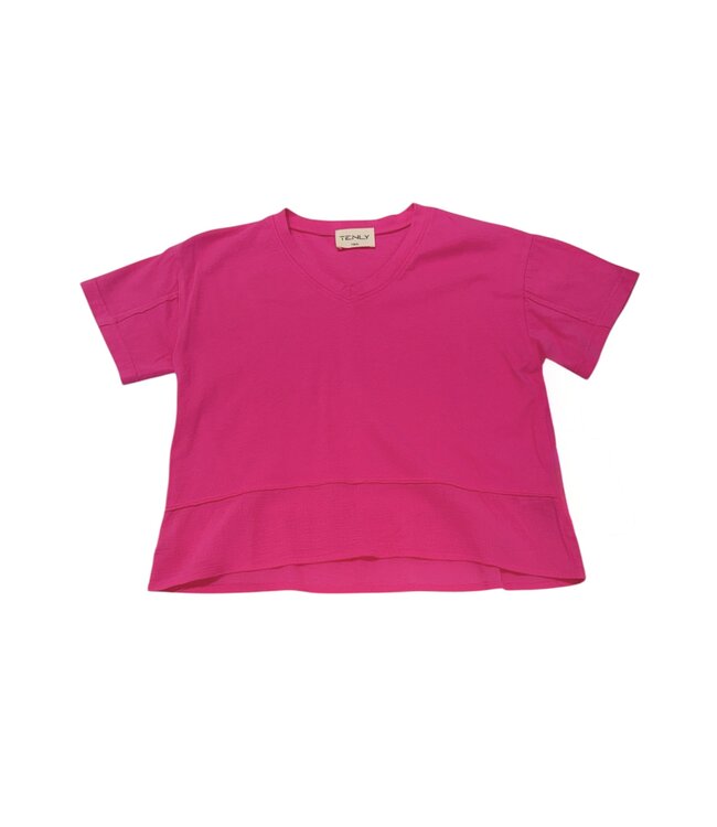 Tenly Dragon Fruit Cotton Jersey Boxy V Neck Hem Tee