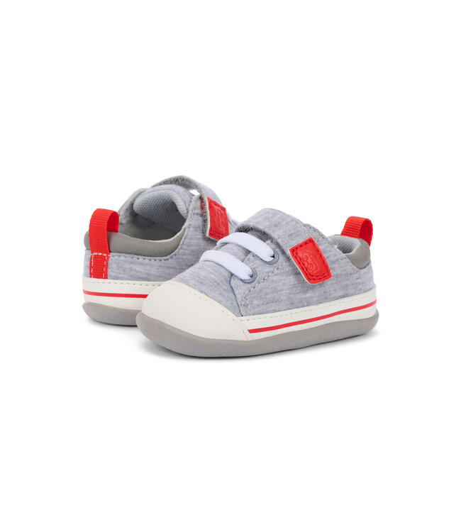 See Kai Run's Stevie Mini First Walker in Gray Jersey & Red features a pliable textile upper, and is expertly designed to be lightweight, flexible, and ultra-breathable. It delivers the perfect blend of support and comfort to your tiny explorer.