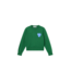 Green knitted girls' sweater with a round neck and long sleeves. Blue heart-shaped embroidered detail on the front. Read more.
