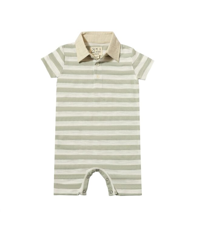 Me & Henry Grey/White Striped Polo Romper
