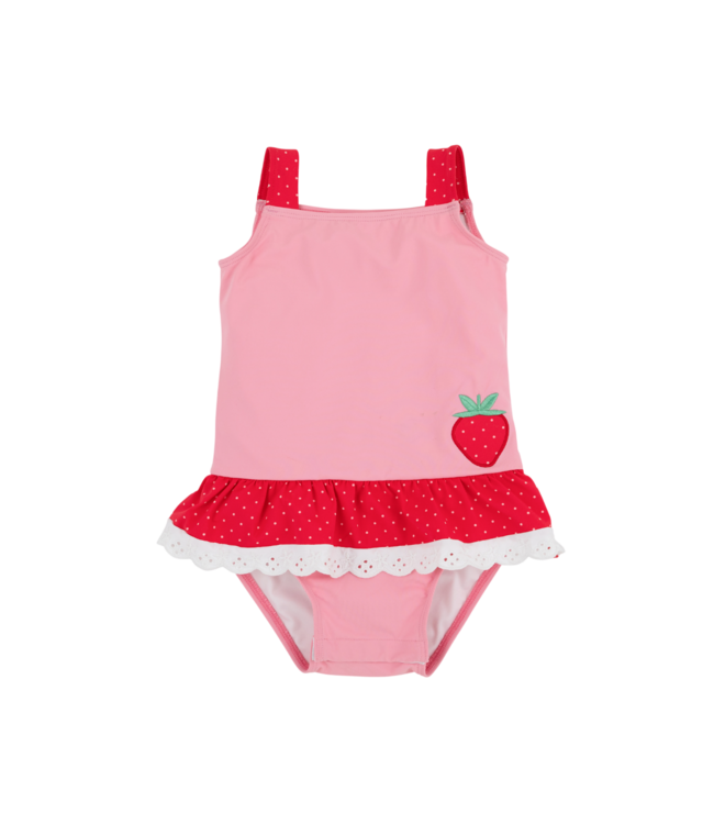 Beaufort Bonnet's Grace Bay Bathing Suit in Hamptons Hot Pink & Richmond Red with Strawberry is a bold, berry bright stunner that radiates pure summertime joy from the first splash! Constructed for little ones who live for the water, this adorable one piece features a lively strawberry accent and a vibrant color block palette that just screams summertime fun! Whether she's playing mermaids at the pool, building sandcastles on the beach, or simply floating down the lazy river, this is the bathing suit that can do it all.