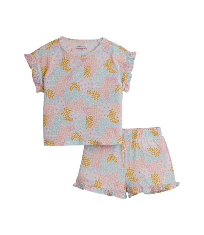 Thanks to magnetic closures that expand the neck, Magnetic Me's Harper Ruffle Modal short-sleeve Magnetic Top & Shorts Set makes self-dressing quick and easy. Comfy and fun for days of play, this set is crafted in eco-friendly TENCEL™ modal, a silky-soft fabric that lasts through many, many washes.