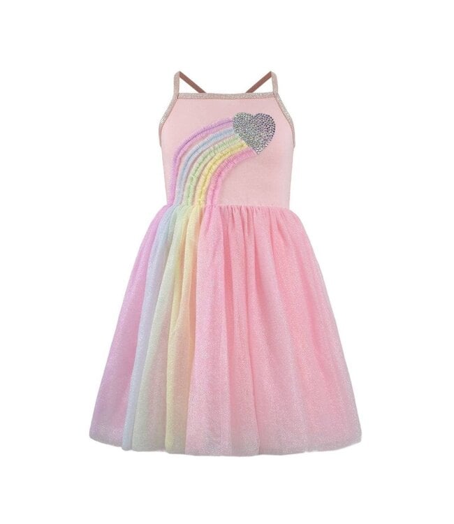 Step into a world of color with this Lola & The Boys dress, adorned with a sparkling heart and a beautiful rainbow design. Featuring a layered tulle skirt in soft pastels, it's perfect for special occasions or any day in need of a bit of magic and color.