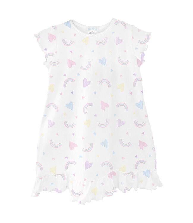 The LydaBaby White Hearts & Rainbows Nightgown is made from ultra-soft 100% Pima cotton and features a sweet pastel heart and rainbow print. Designed for breathable comfort and timeless charm, it’s perfect for cozy toddler nights and peaceful sleep.