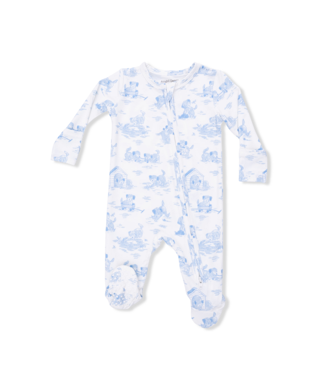 Angel Dear Ivory/Blue Puppy Toile 2 Way Zip Footie