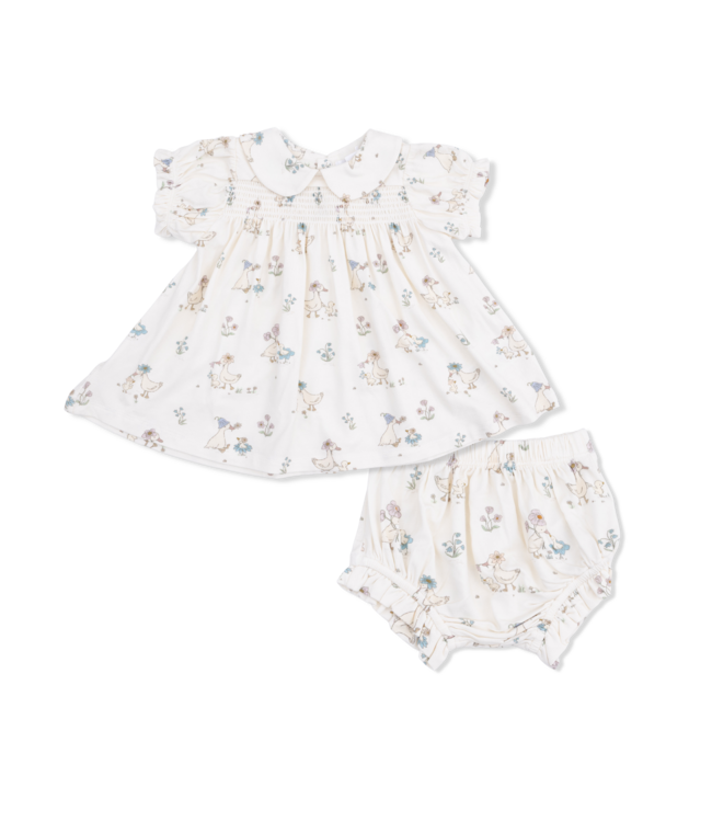 Angel Dear Ivory Flower Ducklings Smocked Dress Set