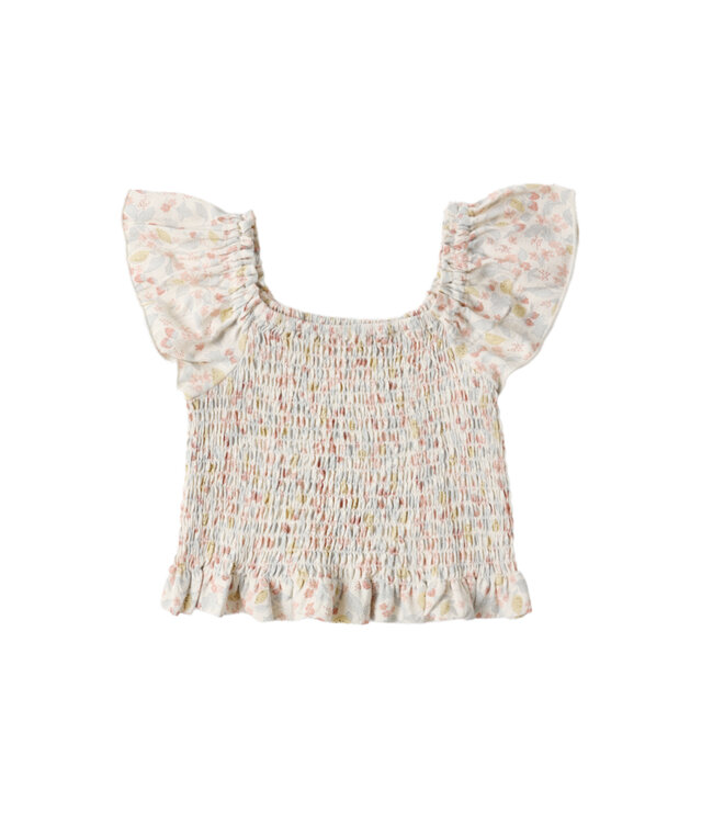 With ruffled sleeves and trim, a smocked front and back, and all the style, Rylee + Cru's Zayla is the blouse of the season. Featuring their 'summer garden' print on an 'ivory' hue - a fun and free floral print for sunny days.