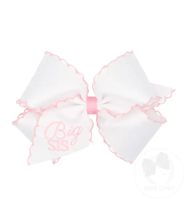 Celebrate the sweetest sister moments with this moonstitch edge grosgrain bow featuring “Big Sis” embroidery. The perfect accessory for matching photos, announcements, and everyday sisterly style.