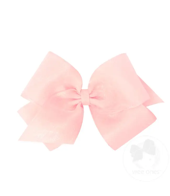 This king bow with a pretty organza overlay will really turn heads. A must-have for big bow lovers! This bow is sure to stay in her hair all day with Wee Ones' patented WeeStay™ no-slip hair clip.