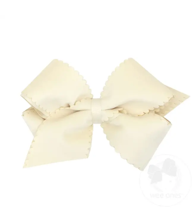 Wee Ones King Scallop Edge Velvet Bow - Antique White