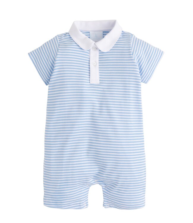 Little English Light Blue Stripe Peter Pan Polo Romper
