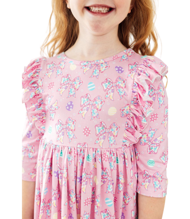 Mila & Rose Little Bow Peeps 3/4 Sleeve Ruffle Twirl Dress
