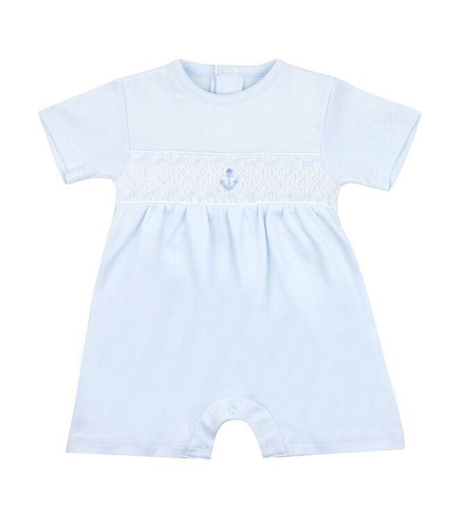 LydaBaby Lt. Blue Anchors and Stripes Smocked Romper