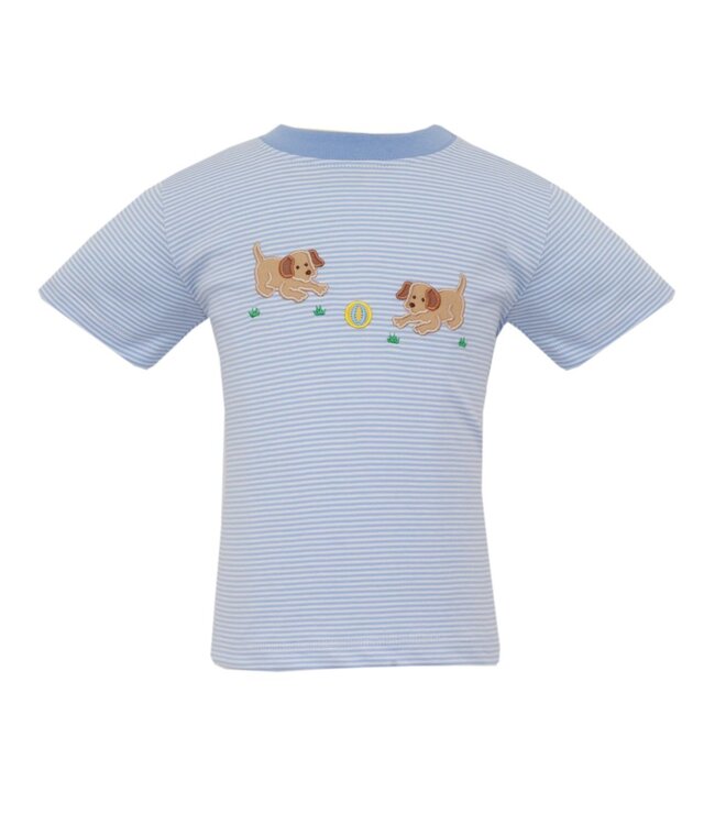 Claire & Charlie Light Blue Knit Stripe Garden Puppies Tee