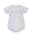 Sweet and timeless for Easter, Petit Bebe's Knit Stripe Bunny Bubble features soft knit stripes with delicate embroidered bunnies across the chest. Finished with a classic Peter Pan collar, this heirloom-style bubble is perfect for spring celebrations.