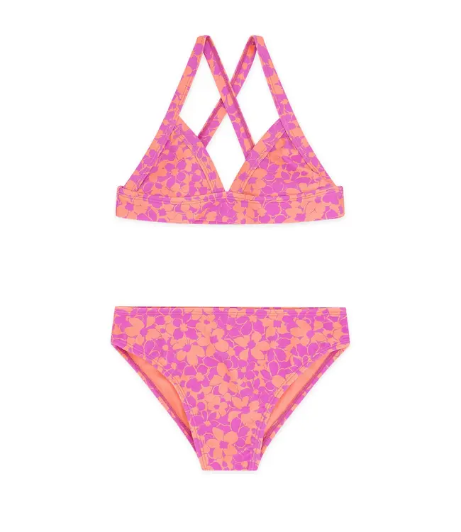 Triangle bikini top with criss-cross back straps for secure comfort and featuring a fun floral print. Read more.