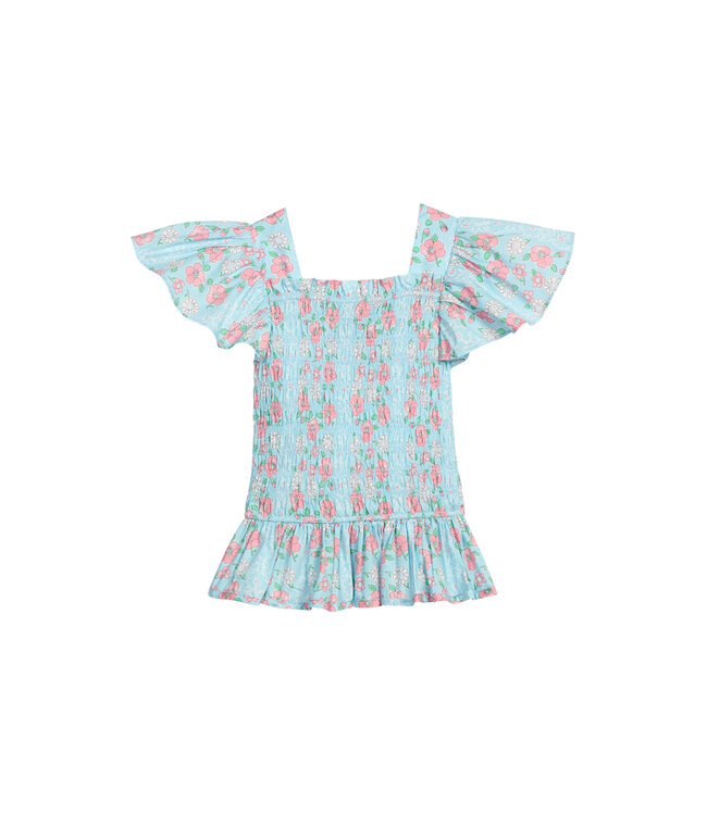 Soft, sweet, and full of flair, this blue floral smocked top is a must-have for any wardrobe! This top features flutter sleeves and a smocked bodice. Comfortable and stylish for your tween girl, it pairs perfectly with Denim Shorts or a skirt!