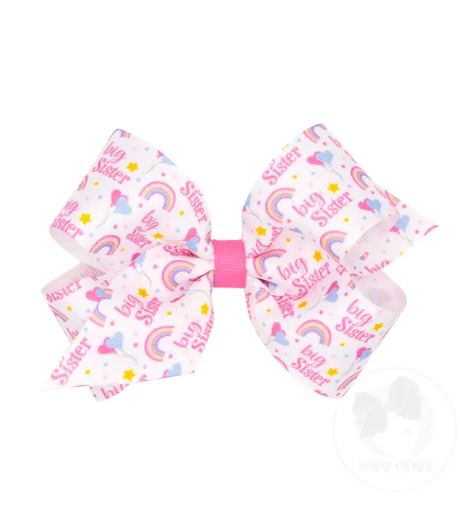 The Wee Ones Medium Big Sister Bow is a sweet way to celebrate her “Big Sister” pride. Featuring a playful rainbow print and Wee Ones’ patented WeeStay™ no-slip clip, this bow stays secure and picture-perfect all day.