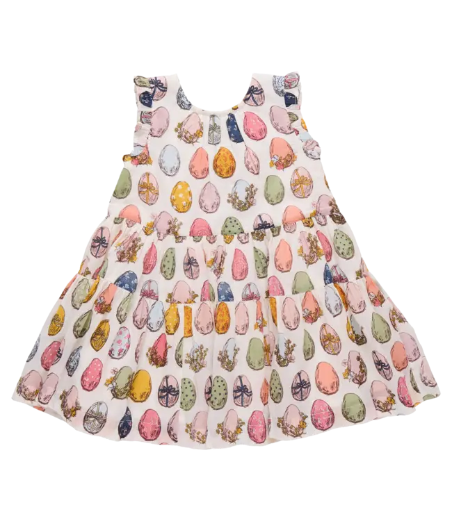 An Easter classic bursting with color! Pink Chicken's Eloise Ruffle Dress features a multicolor egg print in lightweight 100% cotton voile. With sweet ruffles and an easy, breezy silhouette, it's perfect for Easter festivities and sunny celebrations.