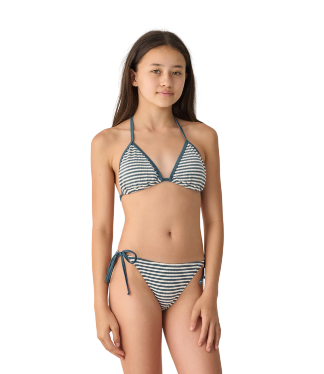 Rylee + Cru's classic Triangle Bikini Set features contrast trim, self tie straps, and removable cups for your comfort. All Rylee + Cru swimwear is UPF 50+ so you can stay protected from the sun in style. Featuring a 'navy stripe' all-over pattern.