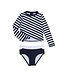 Designed with UPF 50+ sun protection, this long-sleeve rash guard features a covered neckline and wrists for extra coverage. Stretchy, quick-dry swim fabric and a contrast waistband keep her comfortable, secure, and ready for every splash.