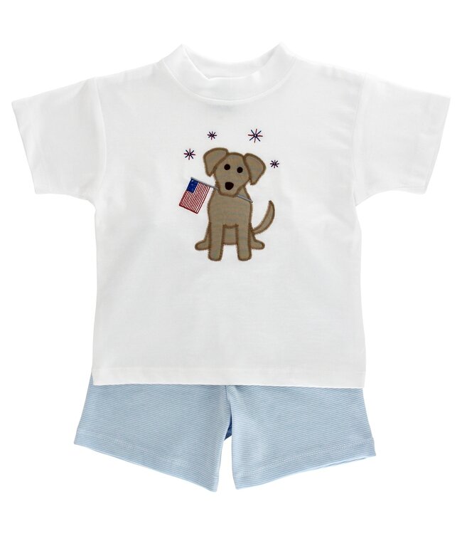 Bailey Boys' Patriotic Pup Boys Short Set captures summertime spirit with red, white, and blue detail. Soft cotton knit ensures all-day comfort. Perfect for family barbecues, fireworks, and portraits.