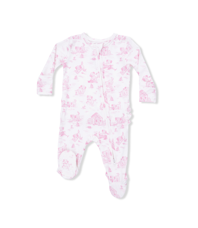 Angel Dear Pink/Ivory Puppy Toile 2 Way Zip Footie