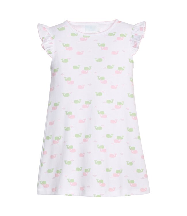 Made from Little English's softest Pima cotton, this classic knit dress features an adorable pink and green whale print and light pink picot trim at the neck and angel sleeves. Perfect for all day summer play, your little girl will just love this comfy classic. Plus, baby sister can match in the Printed Angel Sleeve Bubble - Pink Whales.