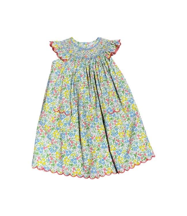 Delaney Pink Yellow Blue Floral S/S Smocked Bishop Dress