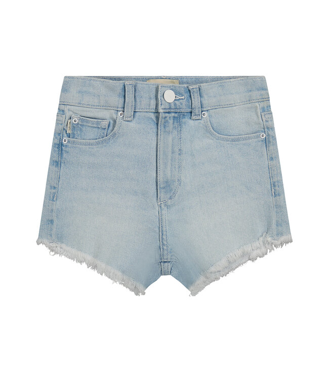 DL1961's Lucy is a classic high rise short with a flexible, high-recovery fit that will always keep its shape. Poolside is an ultra-light indigo wash. It features white hardware, tonal stitching, a raw hem and an ecru back patch.