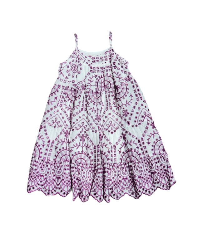 Hayden Purple Eyelet Embroidered Scallop Hem Tank Dress