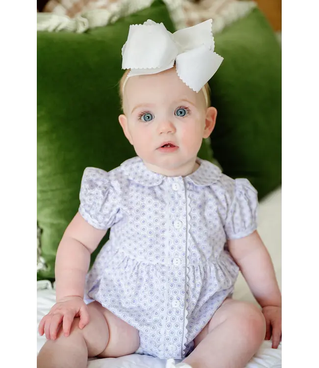 An heirloom-quality favorite for baby and toddler girls who love celebrating springtime in style! Made from 100% cotton, this sweet bubble from Ruth and Ralph features a delicate purple floral pattern and a charming collar with front button detailing.